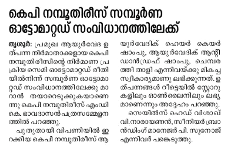 K P Namboodiri's Ayurvedics announced its rebranding initiative in 2021. The objective was to update the brand identity to make it more contemporary and improve brand visibility on the shelf, while retaining the existing red and green colours.